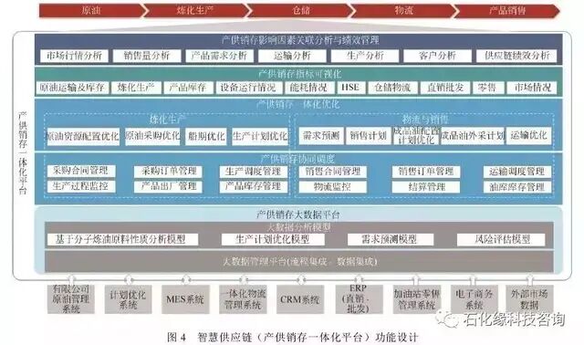 智慧供应链强调整体协调及全局优化,统一优化原油采购、运输、炼厂生产、物流、产品销售,在整个产供销存管理与各业务领域层面,建立集成的信息系统支持环境与工具。