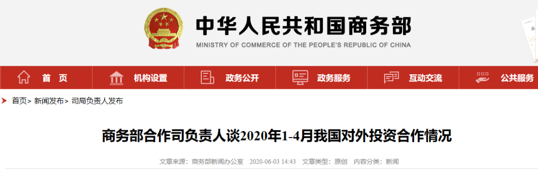 6月3日,商务部发布今年1-4月份对外投资数据。