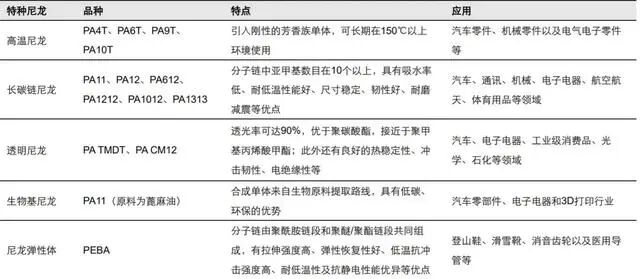 △特种尼龙的种类及特点。来源:艾邦高分子,长江证券研究所