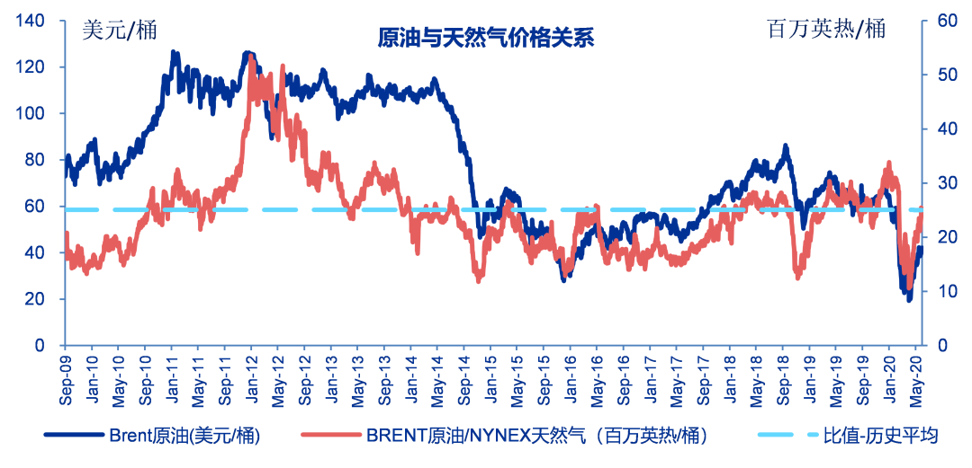 6月19日北美天然气价格期末收于1.67美元/百万英热,较上周同期下降4.57%;当前布伦特原油与天然气价格比约为25.26(百万英热/桶),历史平均为25.05(百万英热/桶)。
