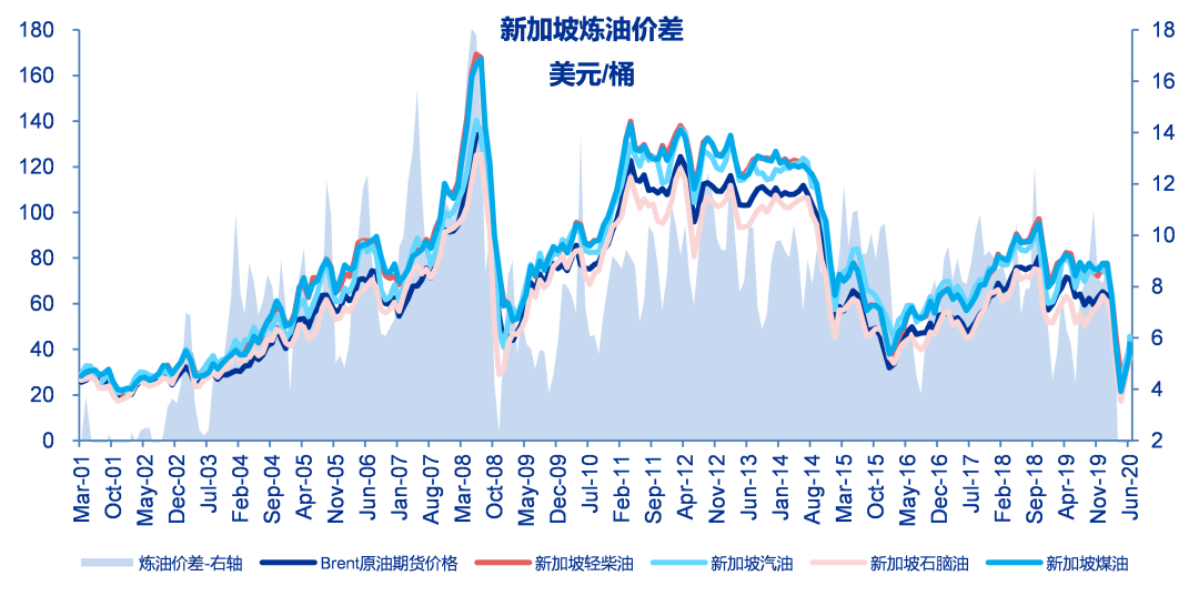 至6月19日当周新加坡炼油主要产品综合价差为2.64美元/桶,较之前一周上涨0.03美元/桶。