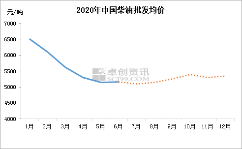 据卓创数据统计,2020年上半年,国内主营92#汽油批发均价6100元/吨,同比下跌16.40%,国内主营0#柴油批发均价为5901元/吨,同比下跌8.86%;山东地炼92#汽油批发均价为5329元/吨,同比下跌18.21%,0#柴油批发均价为5368元/吨,同比下跌10.42%。