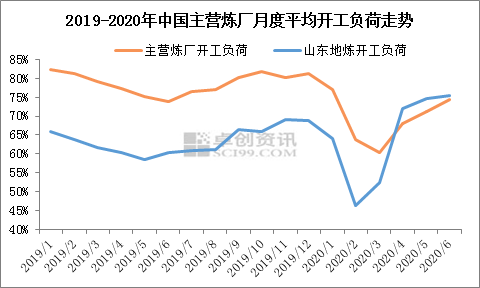 一季度本就迎来春节假期,国内柴油需求将进入年内低点。加之突发公共卫生事件导致各行业延迟复工,居民出行大幅度减少,进一步导致国内成品油需求表现低迷,炼厂开工负荷率皆降至低位。随着公共卫生事件的控制,国内汽柴刚需转好,国内炼厂开工负荷率随之上涨。截至6月24日,国内主营炼厂开工负荷率73.93%,同比下跌2.48个百分点;山东地炼平均开工负荷率为74.54%,同比上涨11.94个百分点。值得一提的是,山东地炼开工负荷率历史性超主营单位创新高,主要是受较高炼油利润的影响,独立炼厂“应开尽开”。