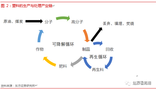 可降解塑料通过堆肥处理能够转化为肥料、二氧化碳和水,种植出含糖或淀粉的作物后,通过发酵或者化工加工就又能转化成用于生产高分子材料的有机分子。这样的可降解循环与再生循环一样,可以大幅减少废塑料对环境造成的影响。另外,可降解塑料根据原料可以分为生物基和石化基,如PLA、PHA、PBS等主要原料是农作物,PBAT、PCL等主要原料是原油,石化原料生产可降解塑料进入可降解循环就不会产生二氧化碳排放,还可以打破社会对石化产品碳排放大的固有认知。