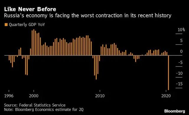 此外,俄罗斯经济发展部部长马克西姆·列舍特尼科夫5月份也曾表示,该国二季度GDP跌幅预计将达到9.5%,全年预计将下跌5%;世界银行7月初的报告则预测,今年俄罗斯GDP预计下跌6%……