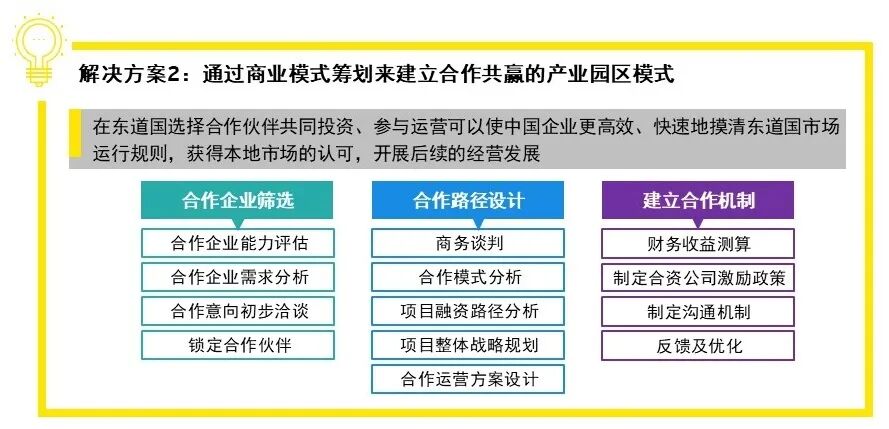 3、海外产业园区的投资企业在与东道国政府开展政策谈判时通常处于劣势地位,如在园区运营模式、利益分配等重大问题上的相关诉求较难实现。而东道国政府机构之间也存在业务重叠、缺乏协同合作等情况。