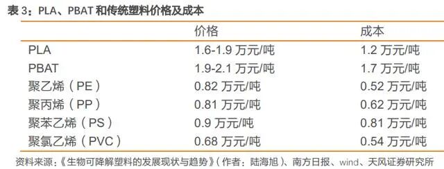 目前,可降解塑料的价格是传统塑料的2-3 倍,限制了其大量应用。目前可降解塑料产品以淀粉基降解塑料、PLA 和 PBAT 为主。淀粉基降解塑料因性能较差且无法实现完全降解, 难以得到进一步推广。PLA 和 PBAT 产品性能佳,可实现完全降解,是未来主流的可降解塑料产品。