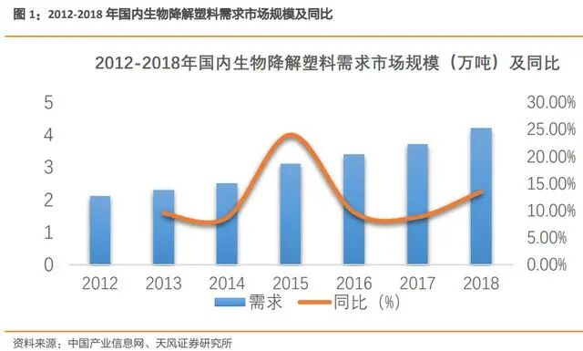 我国可降解塑料市场渗透仅 0.04%。据测算,政策落地后,仅外卖、快递、农膜三个领域,未来可降解塑料需求将达到 154.53 万吨,对应可降解塑料市场约 270 亿元。对比我国当下 4.2 万吨的市场需求量,市场增长空间达 36 倍。