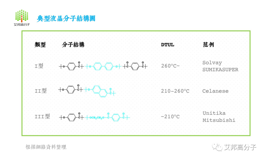 按照形成条件不同,液晶可以分为受热熔融的热致液晶Thermotropic LCP和溶剂溶解的溶致液晶Lyotropic LCP。根据分子结构的不同,LCP又可分为Ⅰ、Ⅱ、Ⅲ型。
