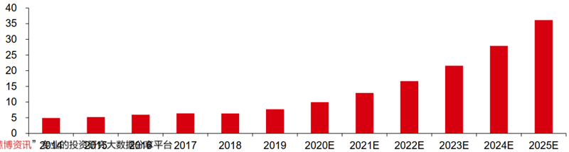 ▲ 2014-2025年全球智能终端产品出货量(亿台):未来6年CAGR为15.81%