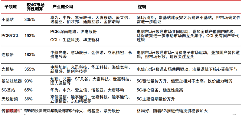上游基础设施:兼顾弹性,优选赛道 。从弹性来看,小基站、PCB、连接器、光模块为弹性最大的子板块;结合确定性强弱、数通和流量逻辑催化,建议关注光模块、连接器、PCB/CCL、小基站等子领域。