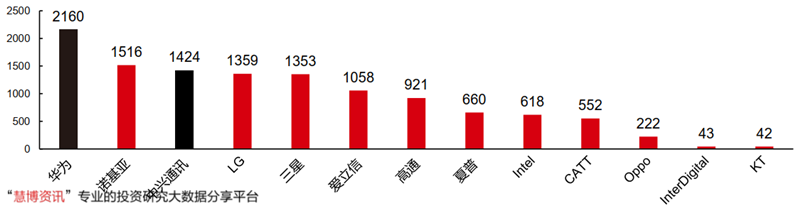 ▲ 5G专利:华为、中兴通讯已领衔全球