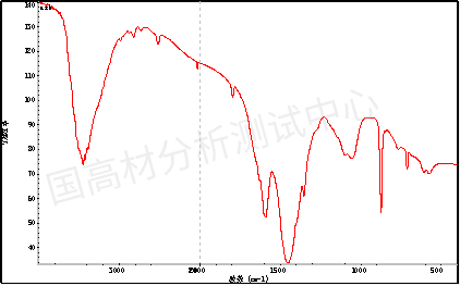 图5是样品灰分的红外光谱图,结合ICP的结果Ca,Si,Ti元素,主要含有碳酸钙(1453cm-1.873 cm-1,712 cm-1),二氧化硅(1100 cm-1)和二氧化钛。