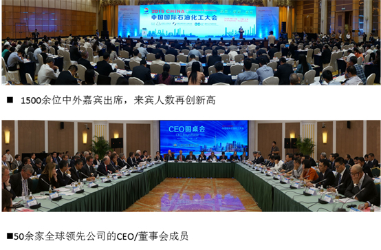 2015年的中国国际石油化工大会刷新了多项记录。大会吸引了来自中、美、欧、中东及东南亚的百余位石化企业高层领导和1200余位嘉宾出席;来自于来自50多家全球领先公司的CEO或董事会成员出席,其中包括中石化董事、副总裁戴厚良、中石油副总裁孙龙德、中国中化集团总经理蔡希有、中国化工集团总经理杨兴强、中国化学工程股份有限公司董事长陆红星,上海华谊集团董事长刘训峰、延长石油董事长贺久长、国际化工协会联合会主席塞拉尼斯公司董事会主席兼首席执行官罗慕科、巴斯夫集团执行董事会董事长博凯慈、壳牌化工全球总裁中海壳牌化工有限公司董事长范霍赋、赢创集团董事长英凯师、瓦克化学总裁兼首席执行官鲁道夫.施陶迪格、三菱化学株式会社社长石塚博昭、住友化学株式会社社长十仓雅和、三井化学株式会社总裁淡轮敏、液化空气集团副总裁、执行委员会成员范绍辉、科思创股份公司董事聚碳酸酯业务集团全球负责人施乐文、雅保公司炼油业务全球总裁纪永信等;100多家行业、财经、大众媒体到会报道,并首次登陆央视新闻联播。