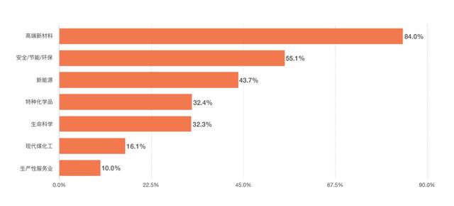 石化行业加大科技创新,走高端、绿色、高附加值之路乃众望所归。具体来看,受访者更加看好高端新材料、安全/节能/环保产品,以及新能源、特种化学品和生命科学产品。(见图10)其中,高达84.0%的受访者认为石化行业应着力发展高端新材料,这体现了当前新材料是我国发展中面临的重大短板,不少行业都面临“材料”不行,被“卡脖子”的现状,特别是化工新材料产品往往处于重要和核心的位置。新能源和节能/安全/环保产品也是近年来一直发展较快的方向,分别有55.1%和43.7%的受访者对此表示关注。除此以外,分别有约1/3的受访者表示应着力发展特种化学品和生命科学产品,其中化工行业的生命科学产品属于多学科结合的产物,这反映了各行业不断融合和创新发展的新趋势。