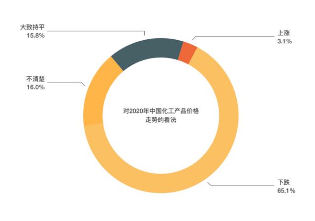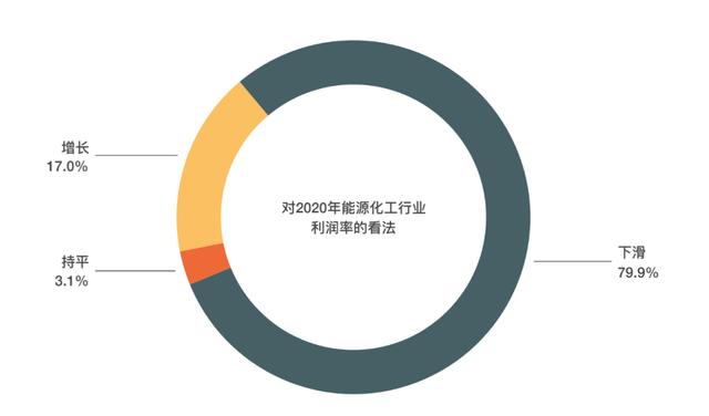 总体来看,受访者多数认为2020年国际原油价格与上年相比将呈走低态势,2020年全球对原油需求大幅降低,供需出现严重失衡,同时会使整个化工产业链陷入成本塌陷危机。理论上讲原油价格走低,化工品制造总成本下降,利润会提升;但若原油价格暴跌是需求暴跌造成的,市场对化工品需求同样会大幅下滑,从而迫使(基础)化工品价格集体走低,企业利润将面临先增加后压缩的风险。