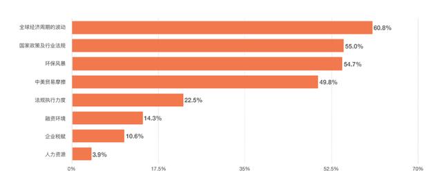 多重因素对石化行业的发展有重要影响,形成了制约行业发展的系列挑战。石化行业效益承压的背后,有着多重的挑战。(见图7)一是全球经济周期的波动,60.8%的受访者认为这对化工行业的发展有重大影响。2008年全球金融危机之后,全球已经经历了近10年的快速增长阶段,特别是前几年美国、日本和韩国等一直保持很好的发展趋势,失业率降至历史新低,但疫情形成强烈的外部冲击,并暴露之前十年全球经济发展中的结构性脆弱,今年来看全球经济将进入新的下行周期,2010年以来长达十年的全球经济扩张周期可能结束。二是国家政策及行业法规,特别是环保标准和执法力度不断加大的压力。随着我国推进行业高质量发展,对行业发展的规制也在不断升级完善之中,经济社会高质量发展,对石化行业提出了挑战,不仅提升了石化行业的成本,也对生产设备、技术工艺等各个方面都提出了新的更高要求。三是中国与发达国家的贸易冲突,如中美经贸摩擦的影响不可小视。从单一市场看,美国是中国最大的出口市场,也是不少关键和高端化工原料以及化工品加工过程技术服务的供应国,中美经贸摩擦不仅打击了石化产品的对外出口,也加大了进口的成本,影响了石化产业链的健康有序发展。最后,部分受访者认为融资环境和企业税赋仍然有待改善。虽然近年来国家大力加强金融扶持力度,实行了系列降低企业负担的行动,但由于整个行业的效益下滑,业内企业仍希望政府进一步加大支持力度。
