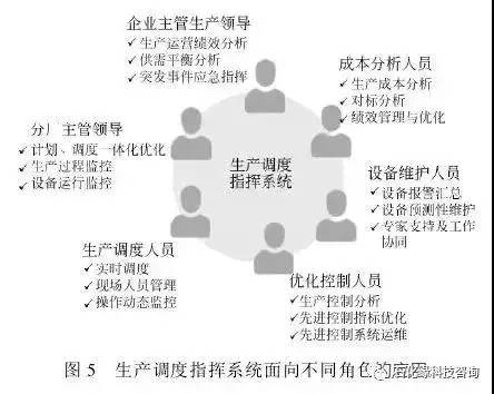 生产运营共享中心提供面向不同角色,包括企业主管生产领导、分厂主管领导、生产调度人员、优化控制人员、设备维护人员和成本分析人员等的应用(图5)。