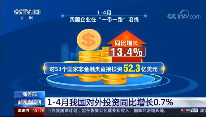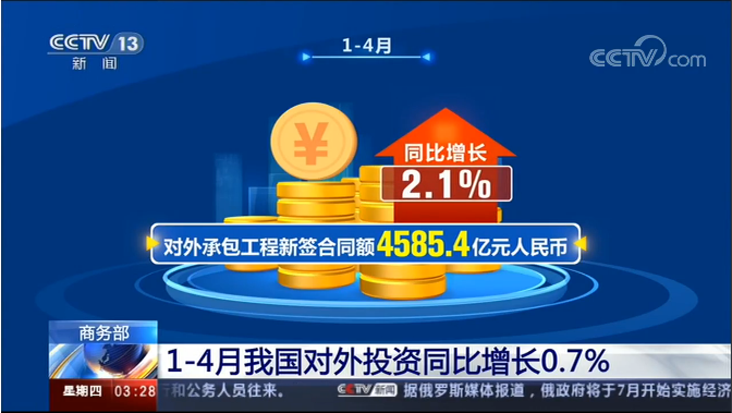 商务部:1-4月,对外投资超2300亿,对外承包工程新签合同额超4500亿