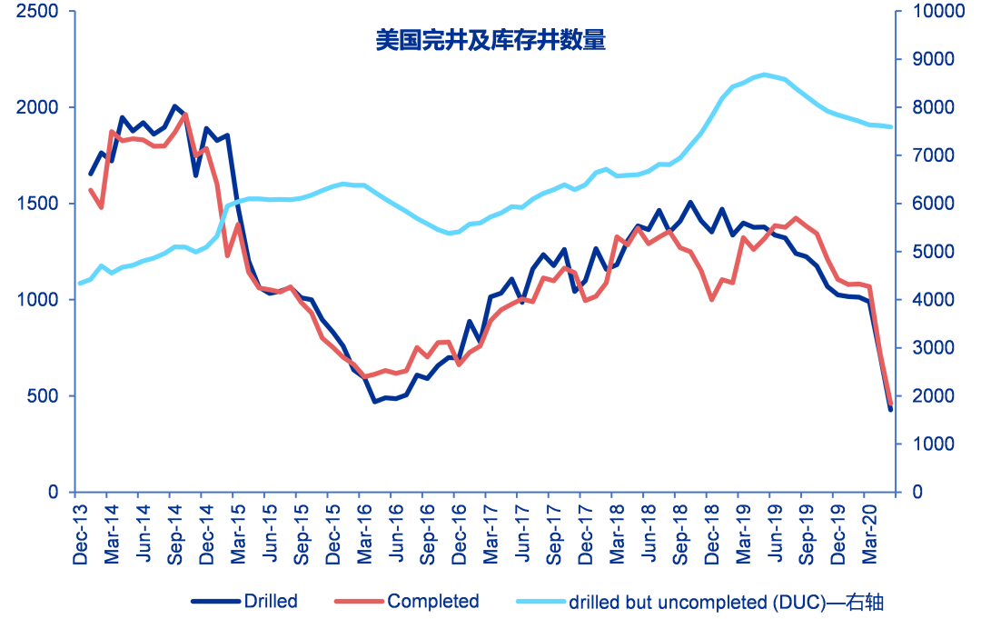 4.美国页岩主导地位结束。由于钻机数量的大幅减少,美国页岩油产量在未来一年可能会下降一半,这将使美国石油总产量在一年内低于800万桶/日,要使产量恢复到接近公共卫生事件前的水平还需要数年时间。