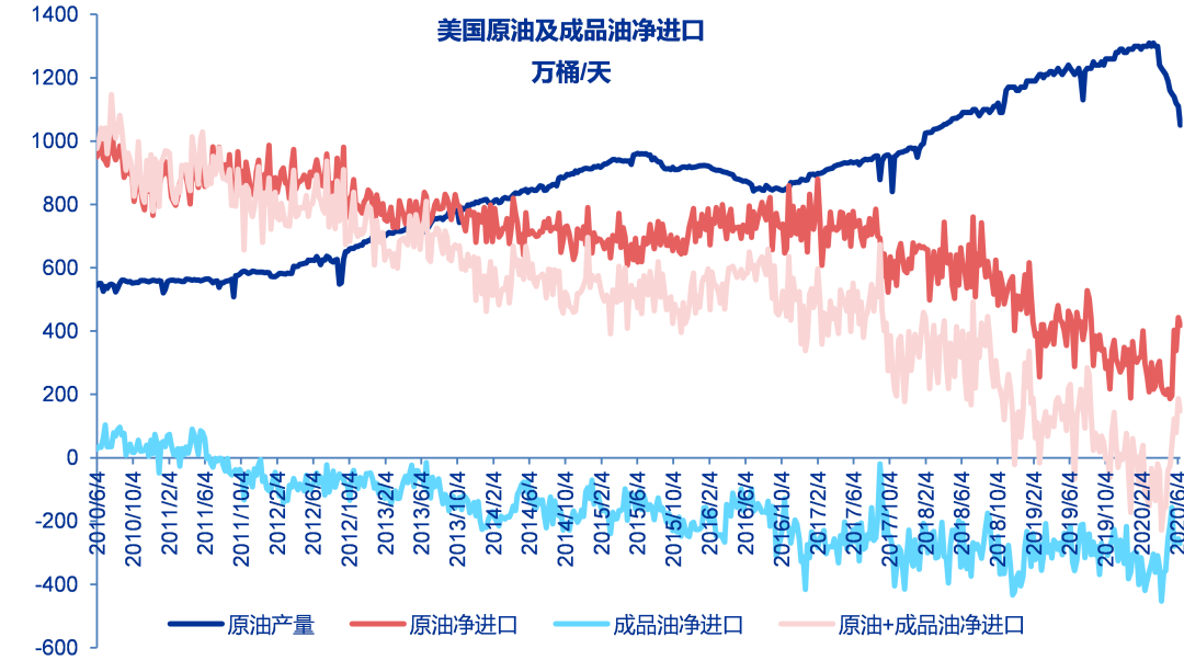 6月12日当周美国原油及成品油的净进口量148万桶/天,较之前一周减少39万桶/天,较去年同期增加74万桶/天。