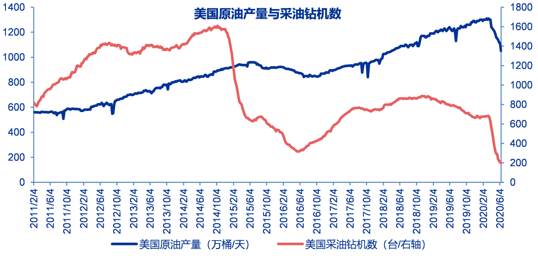 2、全球石油供给:5月全球石油供应下降1180万桶/日,达到8820万桶/日。5月非OPEC+产量已经较年初下降450万桶/日。