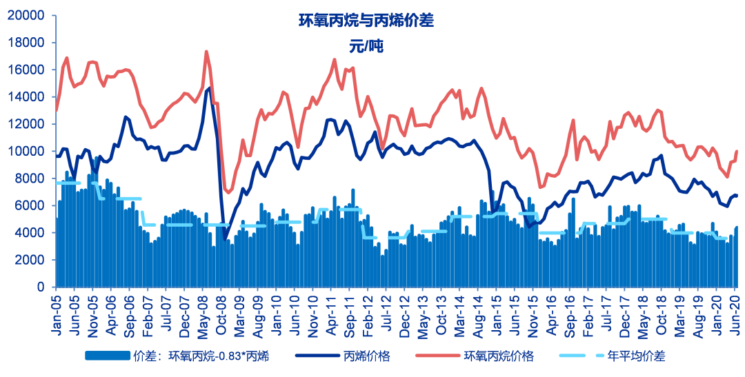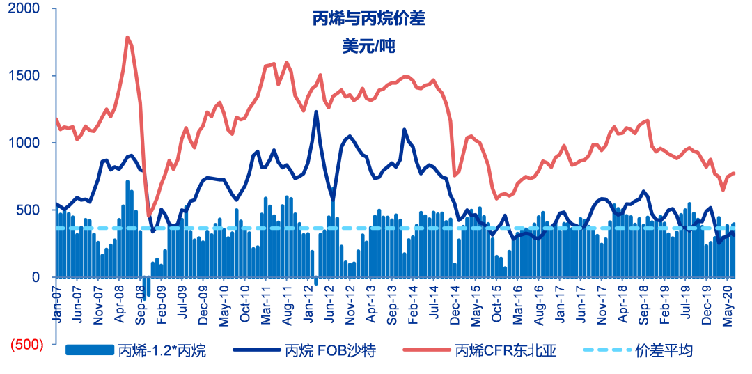 至6月19日当周丙烯与丙烷价差为395美元/吨,较之前一周上涨4美元/吨,历史平均价差为365美元/吨。