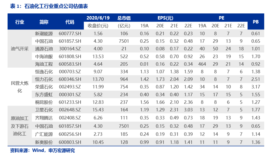 推荐:1)从竞争力、中长期成本受益、产能投放一体化的大炼化角度,重点推荐荣盛石化、恒逸石化、恒力石化、东方盛虹、桐昆股份。2)炼油开工率下降,丙烯产业链或将受益角度,推荐卫星石化及相关丙烯-聚丙烯的生产标的。3)如未来油价存反弹机会,建议关注:中国石油、广汇能源、中海油服、海油工程、新奥股份、中油工程等。