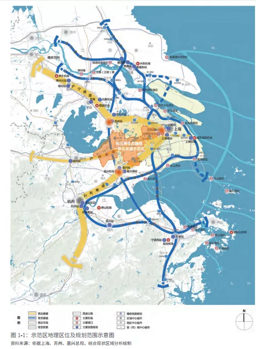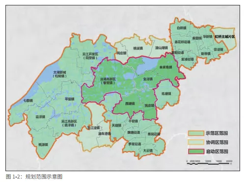 示范区包括上海青浦、江苏吴江、浙江嘉善“两区一县”约2413平方公里的行政辖区,先行启动区为金泽、朱家角、黎里、西塘、姚庄五个镇全域,约660平方公里。