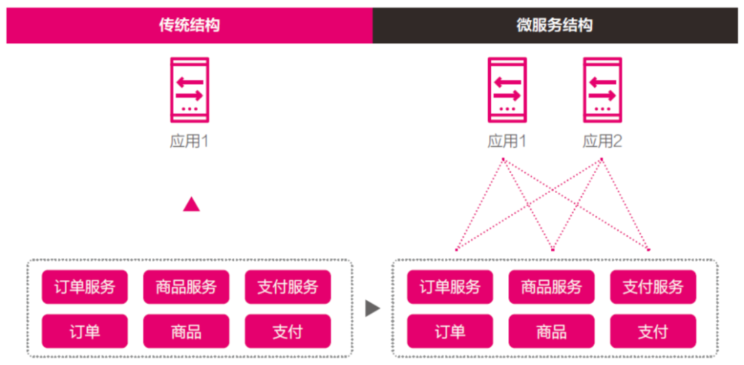 2. IT架构上,通过微服务结构,快速开发环境,以及通过云端资源,快速上线新的IT服务。IT微服务结构将传统打包在一起的满足特定客户需求的服务组合,拆分为服务能力子项。有新需求时,仅需要通过对不同服务子项的重新组合,便可提供新的服务(图6)。
