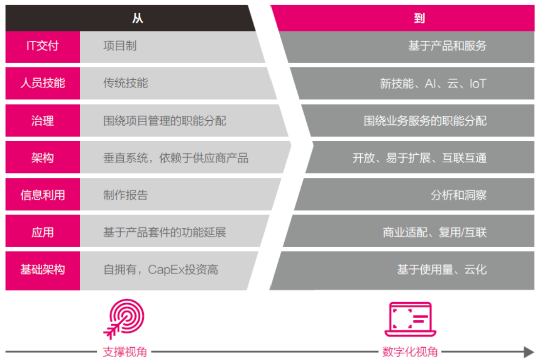 特征说明:传统的IT部门以项目交付为主,数字化IT组织作为企业数字化转型的主要推动者之一,在交付模式、人员技能、IT治理以及成本核算等方面都有较大变化(图10)。