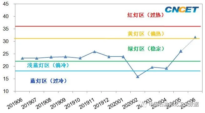 估算6月化工行业预警指数将稳定在绿灯区运行,行业继续处于受疫情影响下的恢复性增长期。