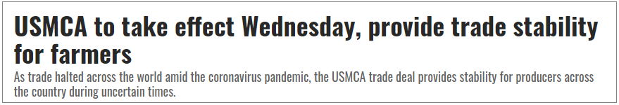 《美墨加三国协议》简称USMCA,是美国、加拿大和墨西哥达成三方贸易协议。
