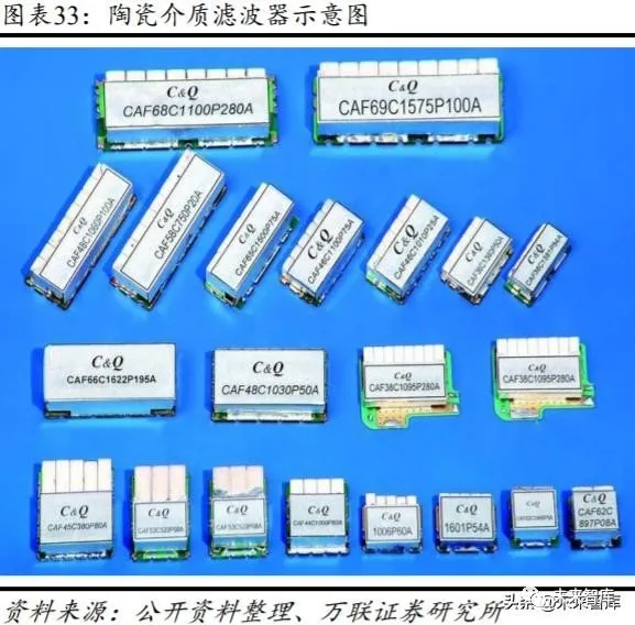 综上,陶瓷介质可以有效降低滤波器的体积、重量以及传输损耗。且微波介质陶瓷的 原材料陶瓷粉体的价格较金属低,使得陶瓷介质滤波器的物料成本较金属腔体滤波器 更低。因此未来陶瓷介质滤波器有望占据5G时代滤波器的主要市场。