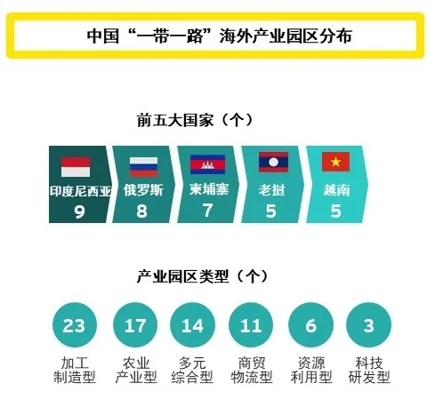 2、对统计的74个“一带一路”海外产业园区的分析显示,园区呈现“大分散,小集中”的区域分布特点,遍布六大经济走廊所覆盖的亚欧非地区,其中近八成在亚洲,并以东南亚最多。