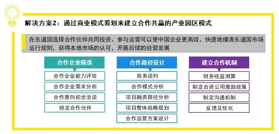 3、海外产业园区的投资企业在与东道国政府开展政策谈判时通常处于劣势地位,如在园区运营模式、利益分配等重大问题上的相关诉求较难实现。而东道国政府机构之间也存在业务重叠、缺乏协同合作等情况。