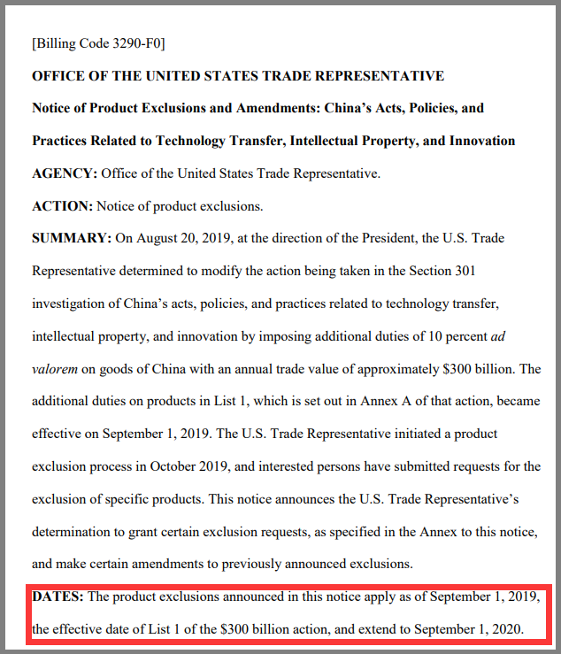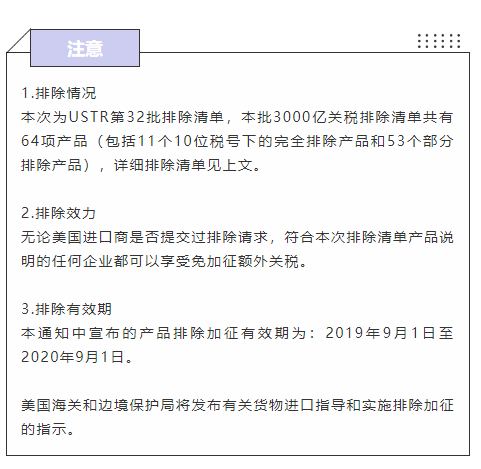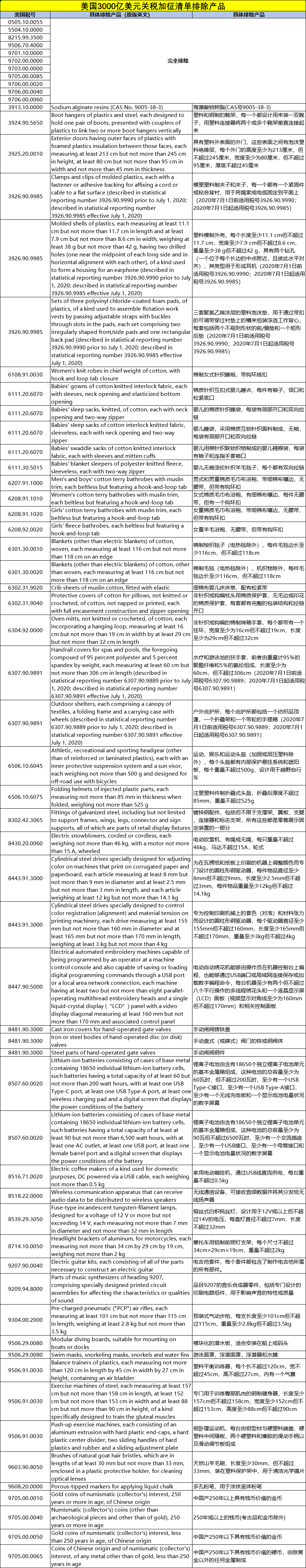 地时间7月20日,美国贸易代表办公室(USTR)公布了新一批对中国3000亿美元加征关税商品A清单下排除产品的公告: