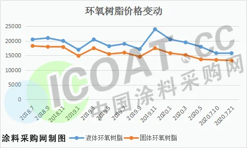 近日,环氧树脂市场行情继续走低,21日,部分企业固体环氧树脂报价已经跌至13300元/吨,较此前7月10日的价格再度下跌200元/吨,创下2018年7月以来的两年内新低。液体环氧树脂报价15800元/吨,延续了10日的价格,也降至两年以来的最低价。
