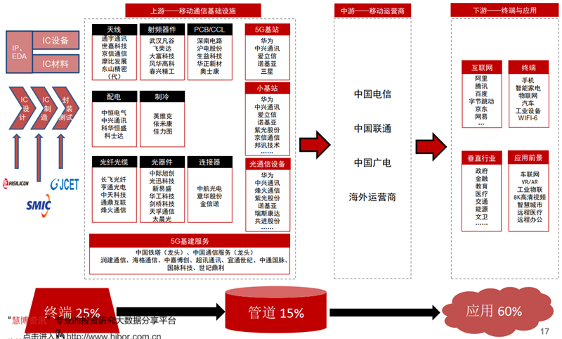 流量持续大幅降价,驱动短视频、O2O等爆款应用爆发,成就中国互联网公司的用户时长、营收和利润提升,但亦对运营商、设备商的营收和盈利增长造成较大压力。展望5G时代,我们判断,最大的投资机遇依然会在应用端产生,或占产业链价值量超60%。除2C端个人应用外,2B端场景应用有望获得更多进展。对于运营商而言,有机会利用边缘计算、网络切片等技术,在智能驾驶、工业互联网、智慧城市&园区、智慧物流等领域参与更多价值分工。参考4G经验,我们判断,5G在技术闭环、商业模式创新,以及成本收益比方面,有望在2022-2023年进入加速突破期。