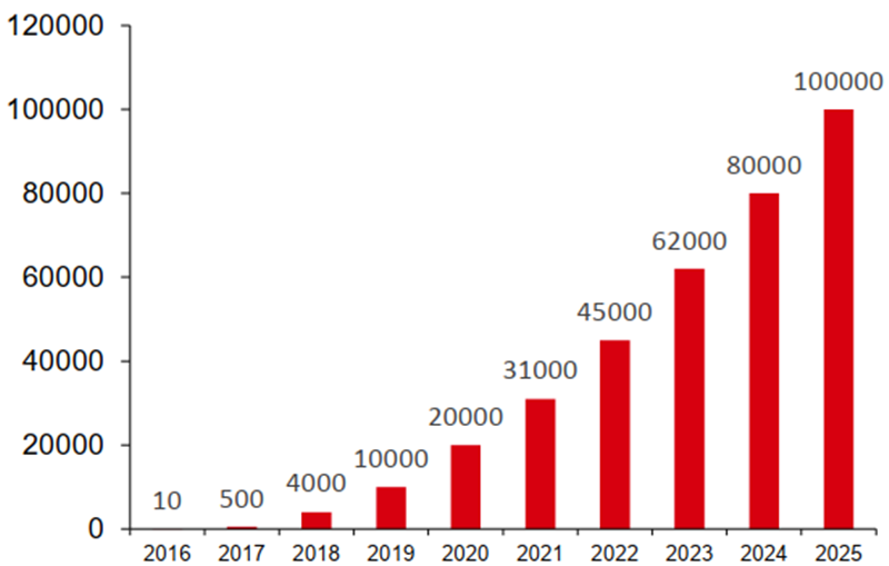 ▲ 2014-2025年中国智能终端产品出货量(亿台):未来6年CAGR为29.38%