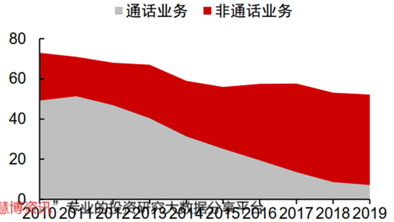 中游运营商:5G流量爆发叠加政策放松,ARPU有望提升 。通话业务企稳;5G流量爆发叠加“提速降费”政策的放松,非通话业务将迎来转折 。
