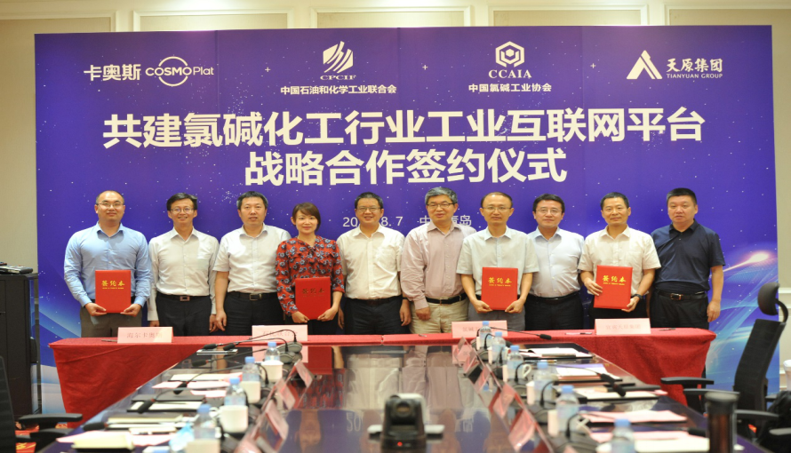 日前,中国石油和化学工业联合会与天原集团股份有限公司、卡奥斯COSMOPlat、中国氯碱工业协会达成战略合作,四方将共建氯碱化工行业工业互联网平台,助力化工行业转型升级。