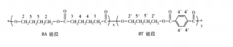 聚己二酸/对苯二甲酸丁二醇酯( PBAT)含有PBT的链段如下图所示,为了进一步改善其可降解性,很多研究工作者和企业也在做PBAT的复合材料,其中PBAT与聚乳酸(PLA)的复合最为常见,聚乳酸10-50份,PBAT 10-50份,淀粉 0-50份,聚己内酯(PCL)为相容剂0.04-2.5,润滑剂0-3份,抗氧剂0-3份,填料1-50份。