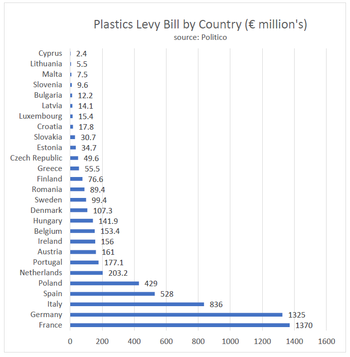 根据欧盟规定,2021之后所有新产生的收入将会并入欧盟提出的7500亿欧元复兴方案。由于“塑料税”提出早于2021年,因此这项收入将被纳入欧盟的一般预算范围。