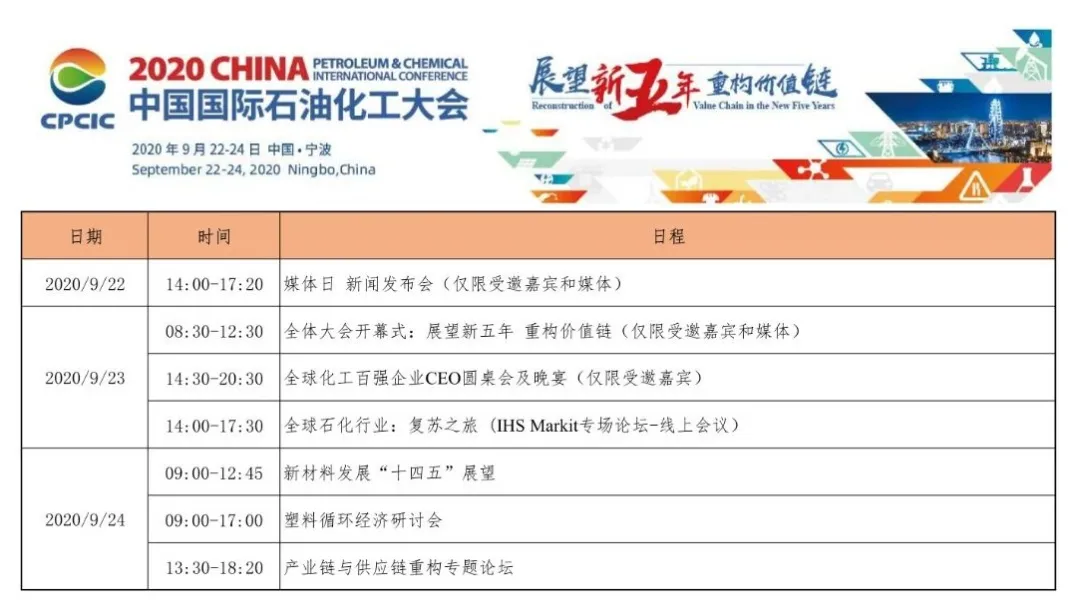 Thanks for registering the 11th China Petroleum & Chemical International Conference (CPCIC), which will take place from 22 to 24 September 2020, in Park Hyatt Ningbo and Shangri-La Ningbo.