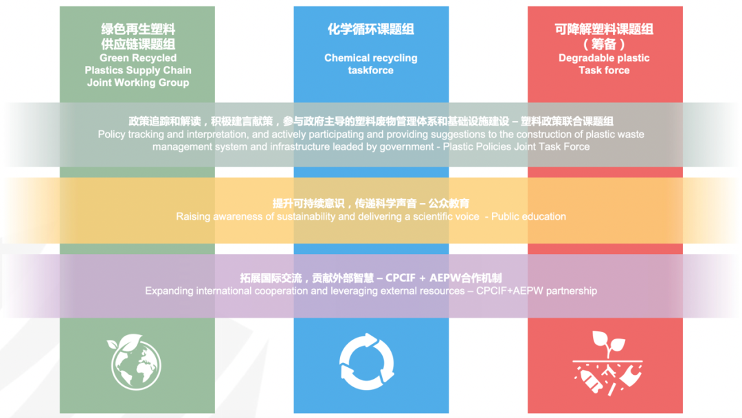 中国石油和化学工业联合会积极响应政策,结合外资委可持续发展工作组前期工作,基于塑料废弃物管理梯级解决方案的理念,在会员企业的支持下搭建了“三横三纵”工作框架。