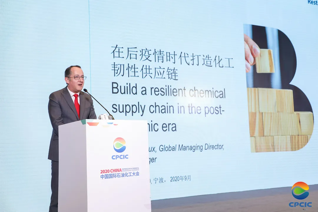 罗兰贝格全球管理委员会联席总裁Denis Depoux作了题为后疫情时代构建柔性供应链的主旨报告,疫情对化工行业的影响,IMF对世界经济预测下调,预计至2021年全球将实现部分复苏,根据罗兰贝格测算模型,建筑、交通行业对化工的影响尤为严重,2020年,全球多家化工企业均调整投资策略,降低了资本性支出。从区域市场来看,亚洲的化工市场将实现率先复苏。疫情对化工供应链的影响,此次疫情对供应链资源整合能力、供应链快速响应能力、供应链抗风险能力等方面带来了挑战,企业未与上下游实现供应链功能整合和信息共享,存在信息割裂问题,企业供应链体系全球跨度广且过于依赖单一供应商,存在中断风险,供应链也面临信息割裂、生产动态调整缺位、供应链风险敞口高等诸多问题。建设柔性供应链是提升企业风险管理能力的重要方式,企业应从计划、采购、制造、物流多方面共同提升供应链柔性,建立三层战略防御机制并以大数据做支撑进行预测与决策,注重采购渠道多元化、降低供应链体系复杂性与区域化本地化建设,通过产品标准化、基地产能互补及智能化技术提升柔性化生产能力。建立增加物流资源储备、优化物流信息系统、仓储统筹布局的三层战略防御机制,并以大数据做支撑进行预测与决策,并以万华化学柔性供应链为示例,“十四五”规划为化工行业明确了新的发展要义,后疫情时代,下游需求旺盛、进口替代潜力较大的产品将迎来发展机遇,未来发展前景较好的典型细分领域包括防疫化工、农化工、新材料等。